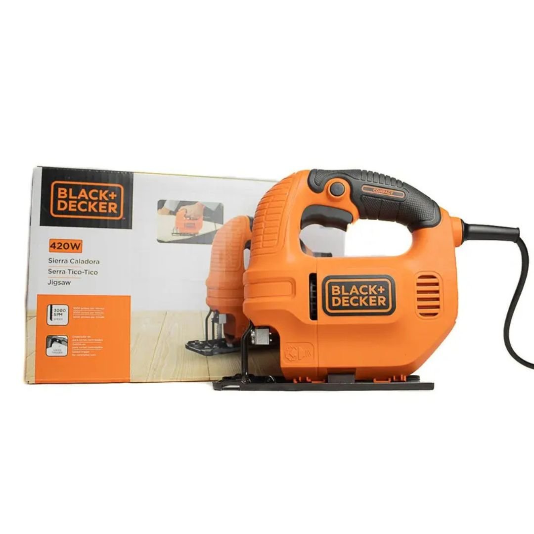 A Serra Tico Tico Black+Decker é ideal para cortes em madeira, metal, alumínio, acrílico e fibra de vidro (perfeita para cortes circulares e curvos) e em aplicações em móveis, janelas, portas, prateleiras e criações de artesanatos. É ergonômica e prática, possui empunhadura emborrachada, baixo nível de vibrações, gatilho de dois dedos com trava, sistema de sopro e fácil troca de lâmina.Marca BLACK+DECKER